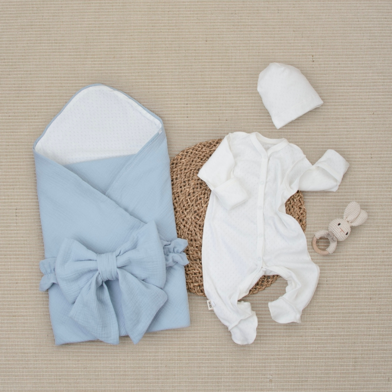 Комплект на выписку 4 предмета "Ажур.Муслин Плед", голубой, лето