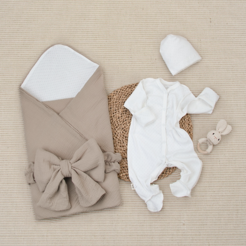 Комплект на выписку 4 предмета "Ажур.Муслин Плед", капучино, лето