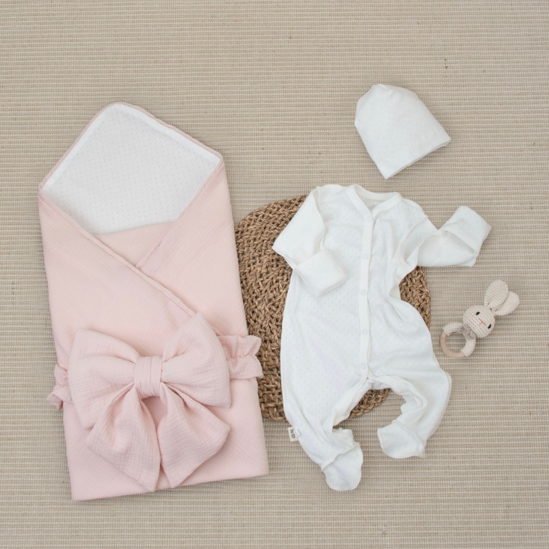 Комплект на выписку 4 предмета "Ажур.Муслин Плед", пудра, лето