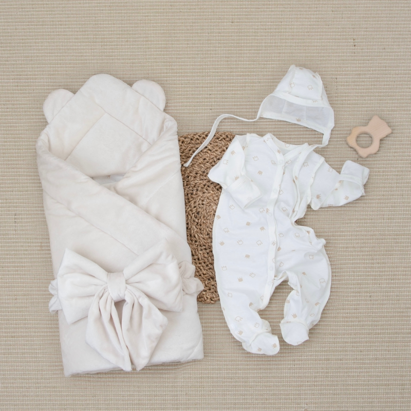 Комплект на выписку 4 предмета "Медвежонок", светло-бежевый, лето