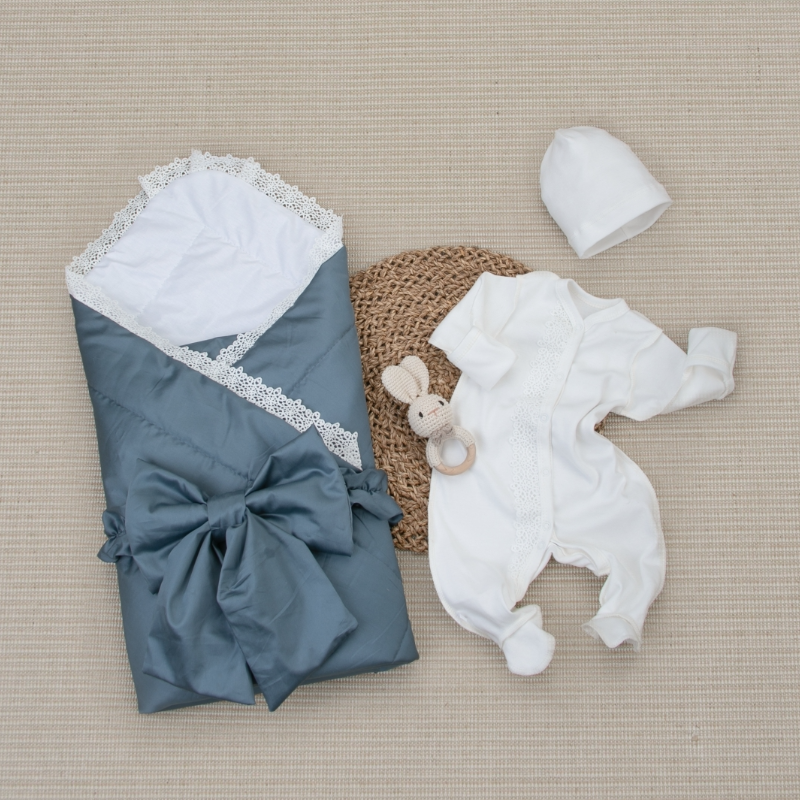 Комплект на выписку 4 предмета "Новый Сатин", деним, лето