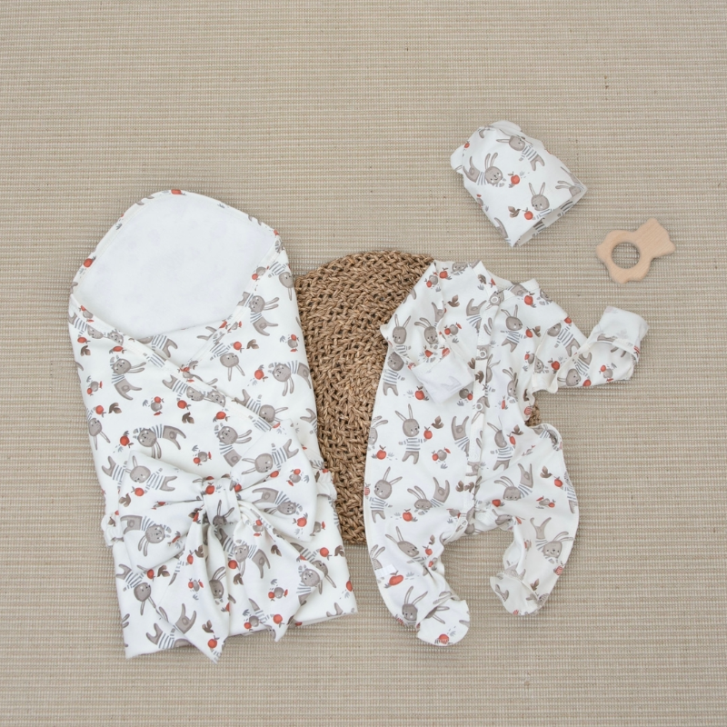 Универсальный, легкий комплект на выписку из 4 предметов "Зайчики.Плед" для теплой летней погоды