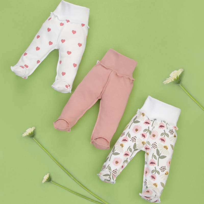 Комплект из трех ползунков разного цветового исполнения на широком мягком поясе-резинке.