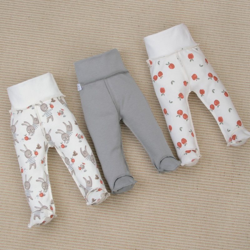 Комплект из трех ползунков разного цветового исполнения на широком мягком поясе-резинке.